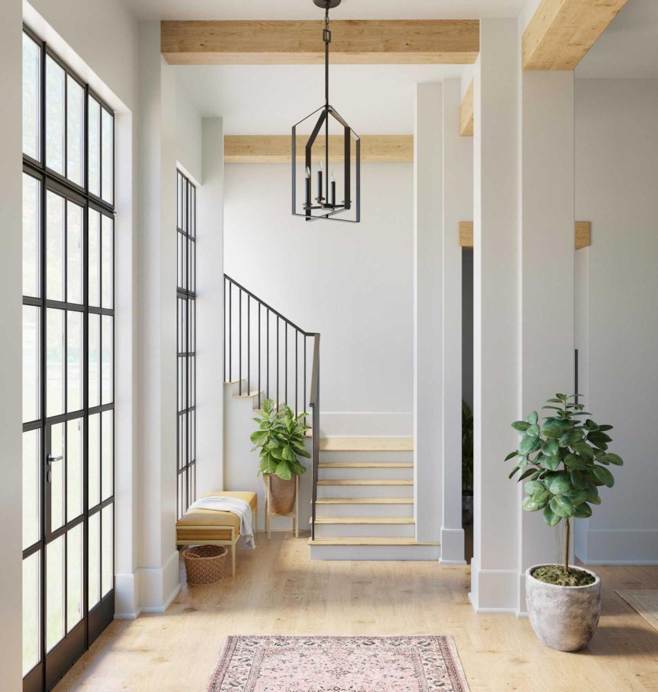The foyer light is finished in a classic matte black