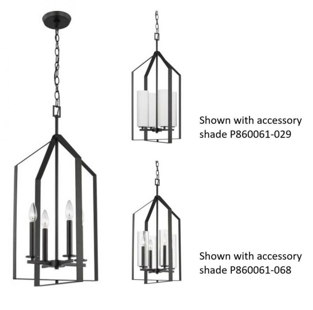 Its open, airy form offers an elegant take on a cage design and can use a clear glass (P860061-068) or etched glass (P860061-029) shade to add a different ambiance.