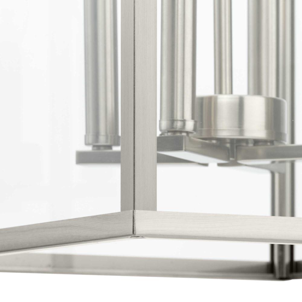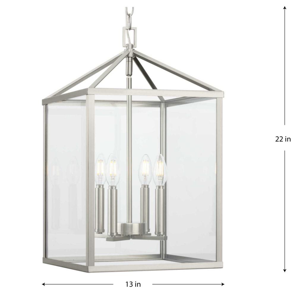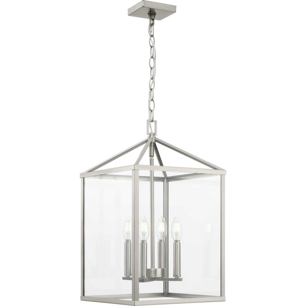 The Hillcrest Foyer Light interprets the traditional carriage light for the modern age, giving it a fresh update with a refined angular silhouette. A classic candelabra base is suspended within a clear beveled glass frame.Clear illumination is cast from its airy design.