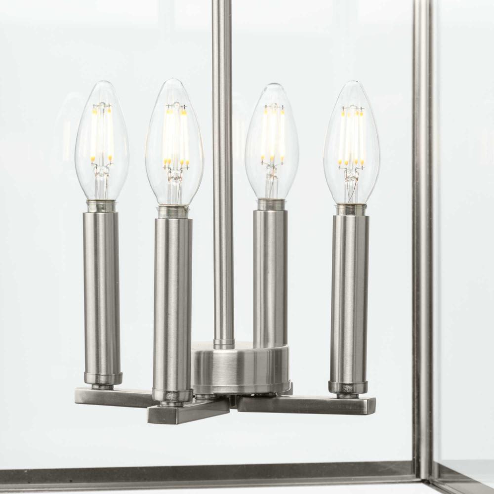 Uses (4) 60-watt candelabra base bulbs or LED equivalent, that is sold separately, and dimmable when used in conjunction with a dimmable bulb