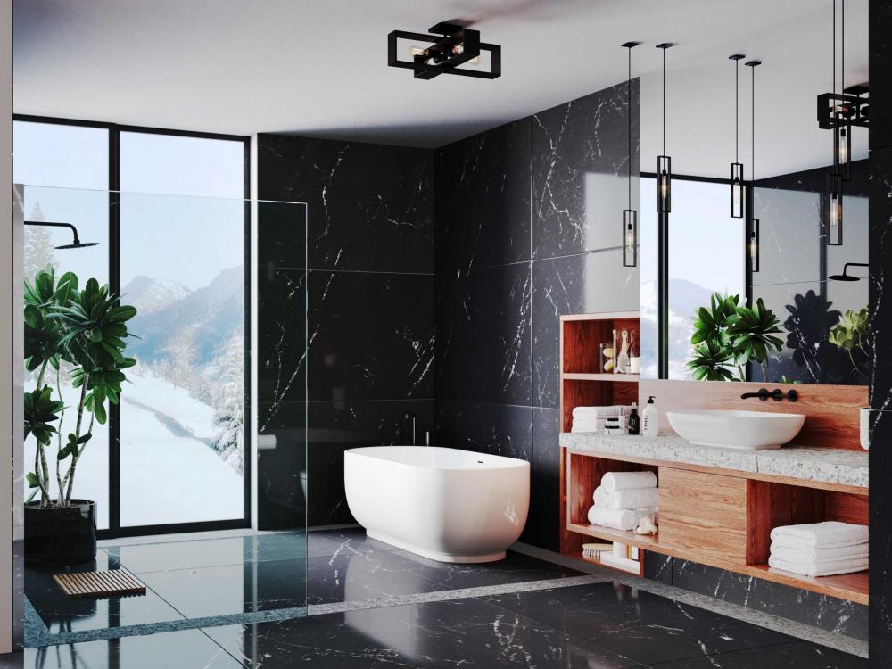 Matte black finish and roasted chicory wood combine for a modern organic look