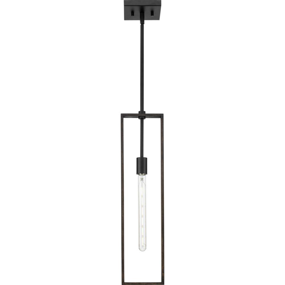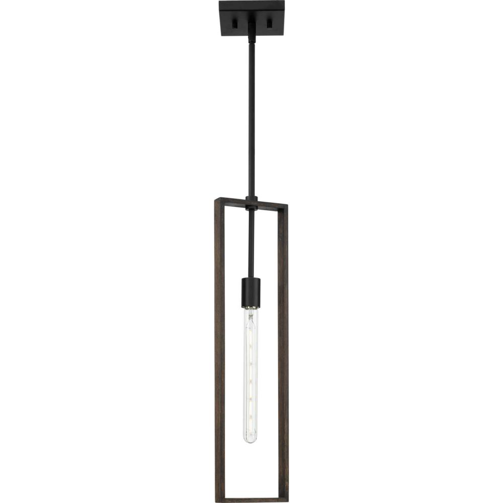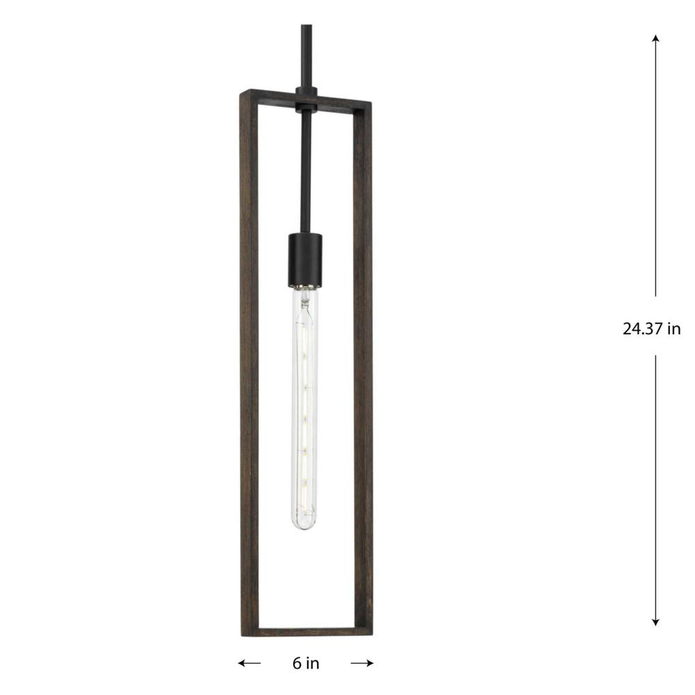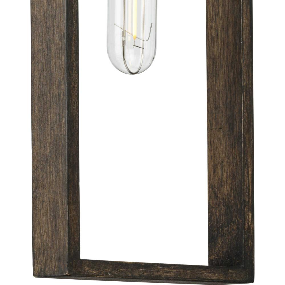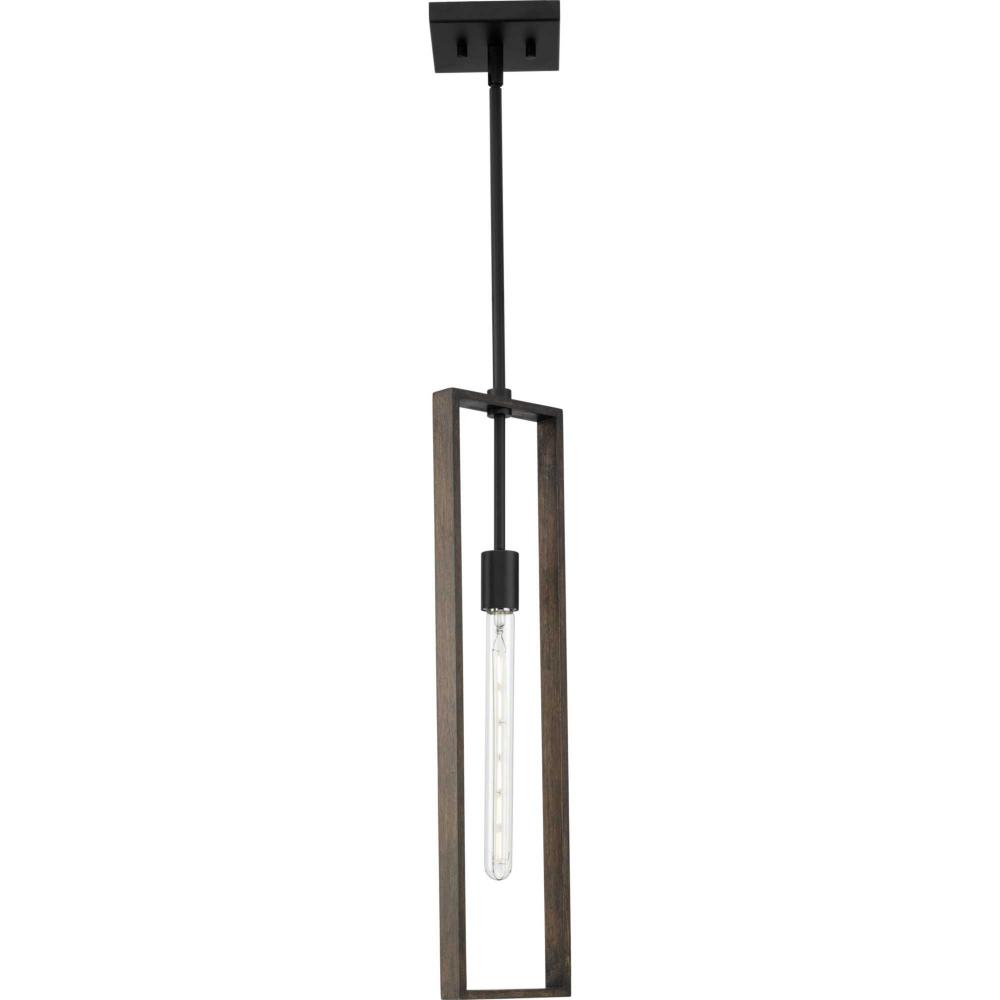 A simple rectangle forms the building blocks of the Boundary pendant. The light's modern organic design is crafted from natural wood and offers warmth and timeless style to contemporary settings.An elongated rectangle forms an open frame showcasing a light source that delivers clear illumination to the surrounding space. This light is part of the Progress Lighting Design Series, a lighting collection offering fashionable styles and affordable luxury lighting for the home.