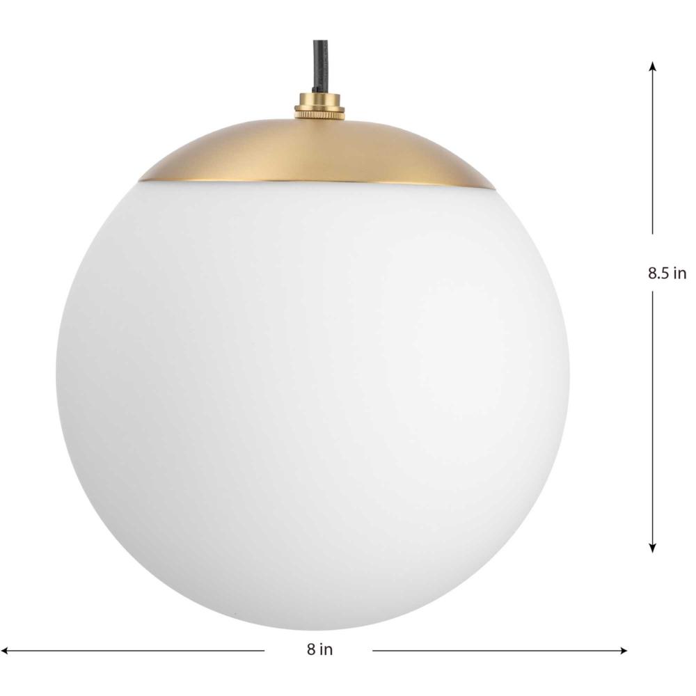 A light source glows from within a opal glass globe shade that fosters a soft and enduring design