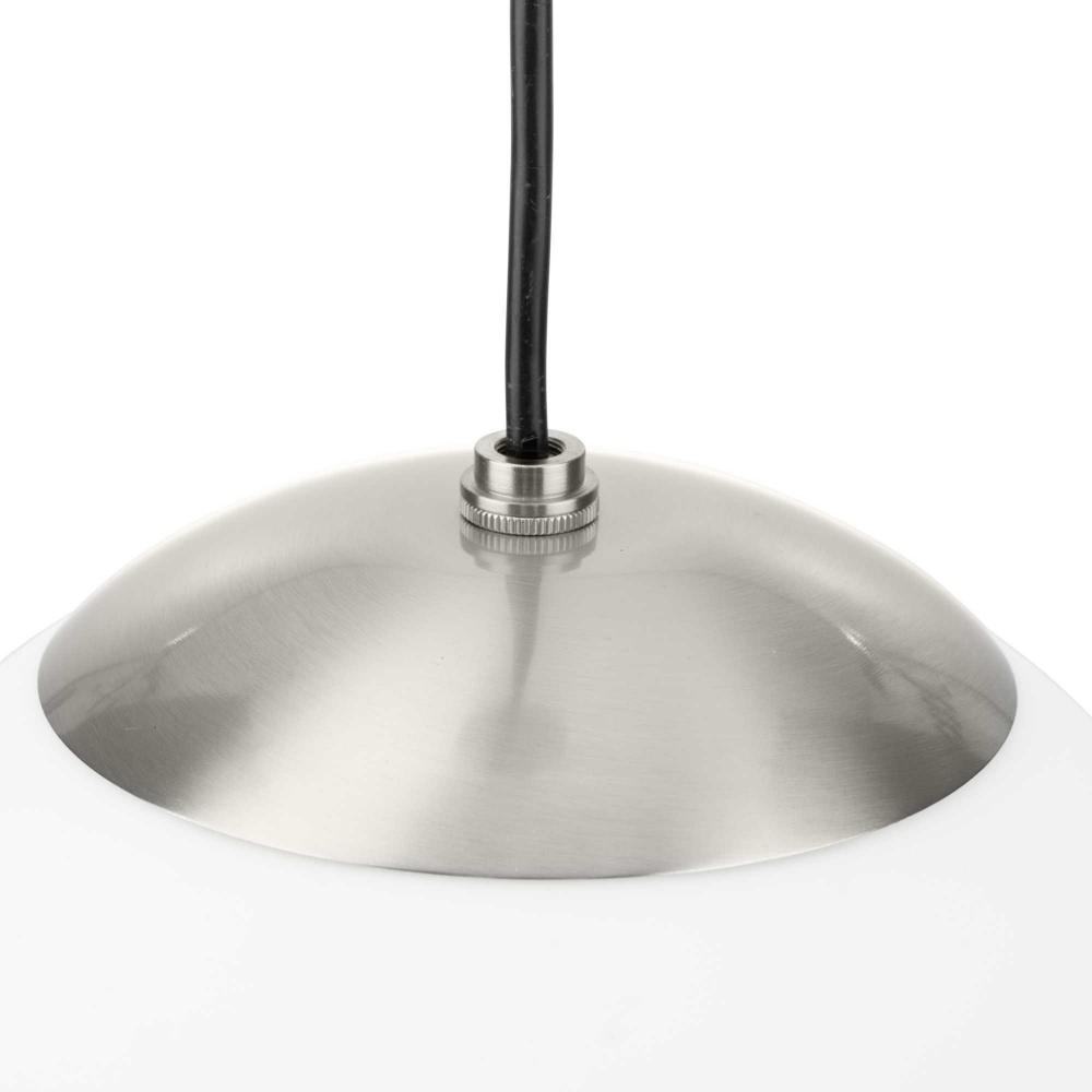 Embrace a statement-making lighting design with the Atwell Pendant Light. A light source glows from within an opal glass globe shade, fostering a soft and enduring design. The metal cap and light base are coated in a beautiful Brushed Nickel finish that accentuates the design's modern aesthetic. The light hangs from a flexible black cord that can be adjusted for height to meet your unique design needs.