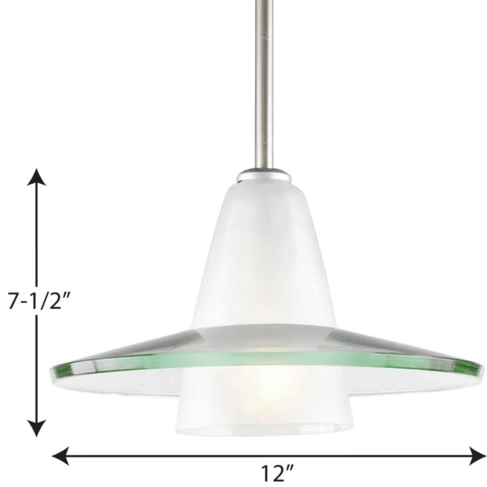 Brushed Nickel finish.;Etched glass cone supporting a heavy curved clear glass shade.;Etched glass cone supporting a heavy curved clear glass shade.;Includes two 12", two 15" stems.
