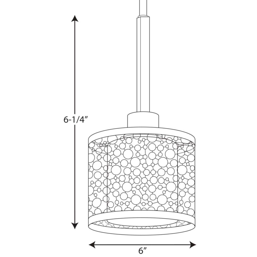 Concentric circular pattern in a Brushed Nickel metal shade.;Etched parchment glass.;Contemporary styling.;Includes one 6", four 12" stems and 6 links of chain.