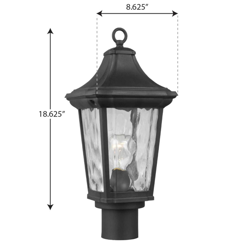 This post lantern is a go-to choice when incorporating classic silhouettes with a farmhouse flair into your home décor vision. The traditional frame is constructed with non-metallic, corrosion-resistant composite polymer in a classic black finish. A beautiful water glass shade adds charming character to the timeless design. DURASHIELD by Progress Lighting is built to last. Constructed from a composite material with UV protection, DURASHIELD holds up even in the harshest weather conditions. This high-performance finish has a 5-year warranty and is resistant to rust, corrosion, and fading.