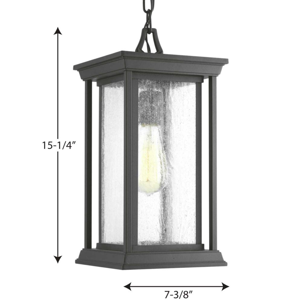 Features a Craftsman-inspired silhouette;An outdoor lantern with an elongated frame.;Frame is finished with clear seeded glass;Black finish.