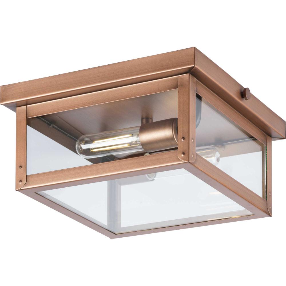 Taking its inspiration from vintage gas lanterns, Union Square has a timeless Antique Copper finish that graciously complements its clear flat glass panels. Mechanical details provide character to the form. Use inside to light halls, foyers, bedrooms as well as outdoor settings. This fixture is part of the Progress Lighting Design Series, a lighting collection offering fashionable styles and affordable luxury lighting for the home.