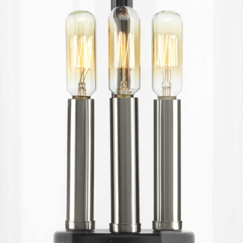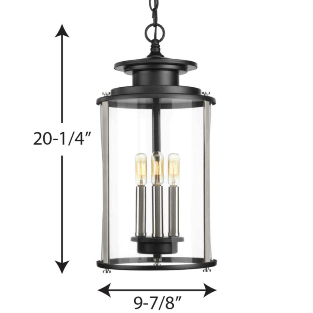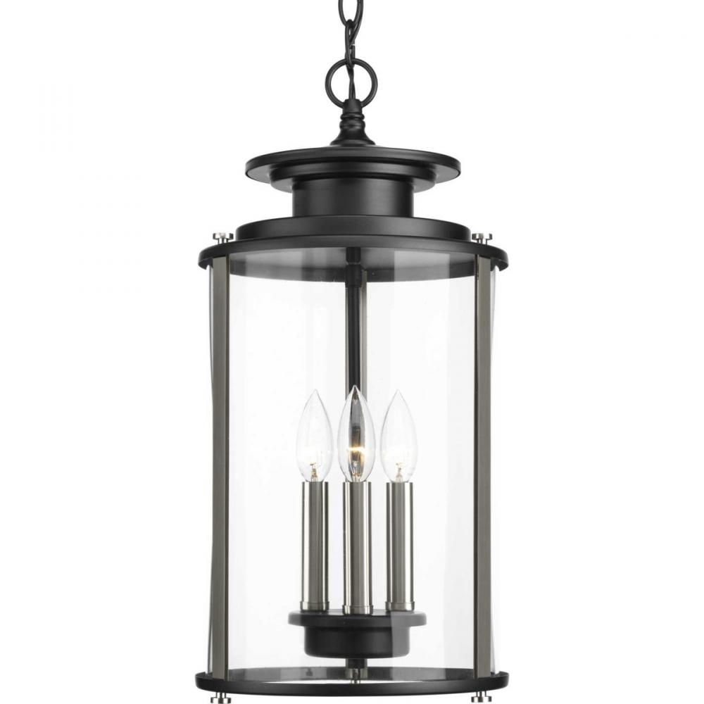 Squire three light hanging lantern features a classic traditional profile with clean, modern metal fittings. The Black finish is accented with contrasting Stainless Steel metallic elements, the cylindrical frame is comprised of a clear glass diffuser.