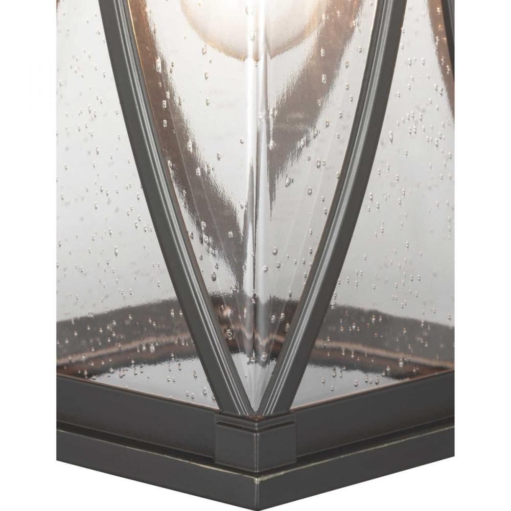 Clear seeded glass, heavy forged details and curving metal accents hearkens back to a Colonial era;The hanging lantern makes a distinguished greeting in a portico, over an entry door, or placed along the roof of a porch or veranda;The classic lines and swe