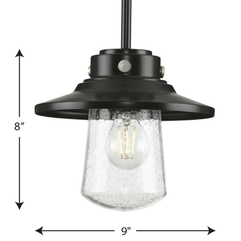 Application: Welcome family and friends home with the Tremont Collection 1-Light Matte Black Clear Seeded Glass Farmhouse Outdoor Hanging Mini-Pendant Light ideal for any kitchen island, breakfast nook, foyer, bar, covered porch, or patio.;Styles: Perfect