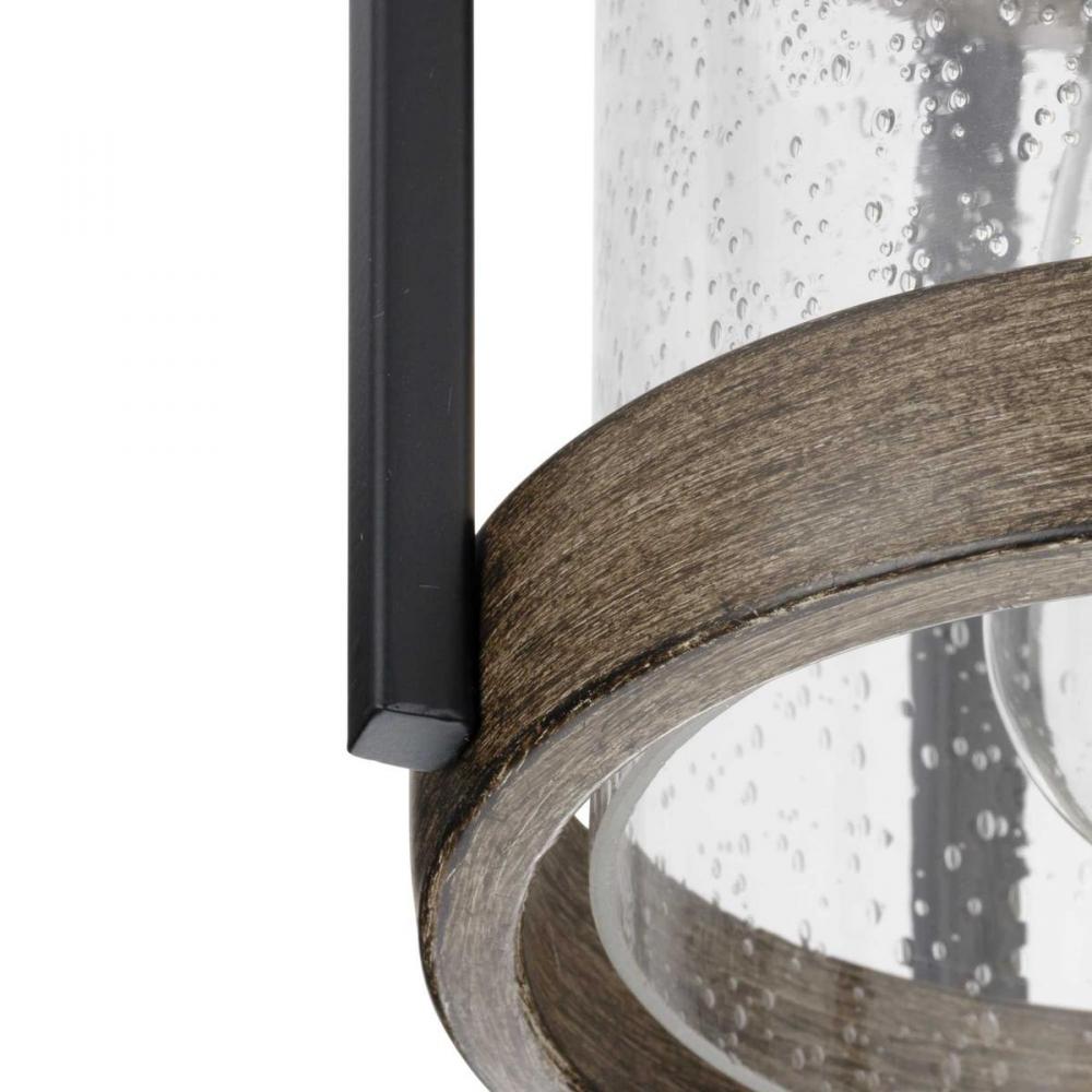 Ideal for a porch, hall, kitchen, foyer, patio, or entryway;Perfect for farmhouse and rustic style settings;Classic matte black finish with aged oak accents;Clear seeded glass;Includes installation instructions and mounting hardware;Use 1 medium base base