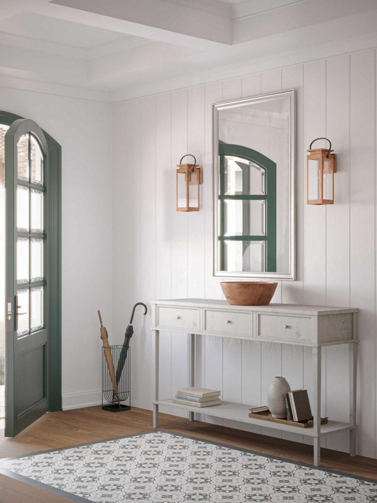 The fixture's angular frame and clear glass shade accent vintage electric, urban industrial and farmhouse exteriors