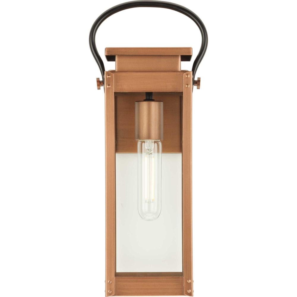 Taking its inspiration from vintage gas lanterns, Union Square has a timeless Antique Copper finish that graciously complements its clear flat glass panels. Mechanical details provide character to the form. Use inside to light halls, foyers, bedroom as well as outdoor settings. This fixture is part of the Progress Lighting Design Series, a lighting collection offering fashionable styles and affordable luxury lighting for the home.