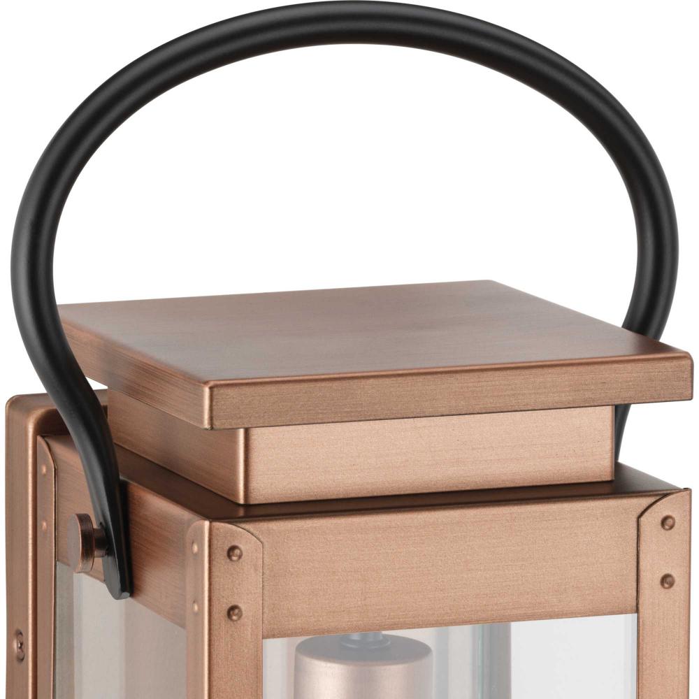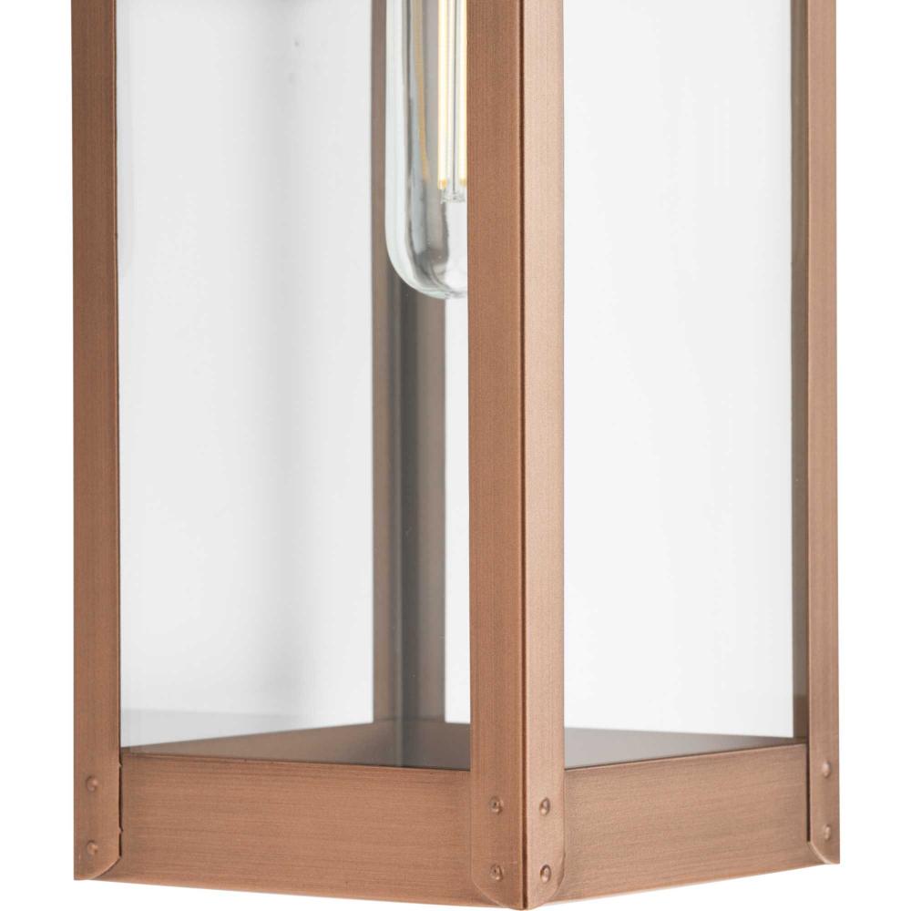 Taking its inspiration from vintage gas lanterns, Union Square has a timeless Antique Copper finish that graciously complements its clear flat glass panels. Mechanical details provide character to the form. Use inside to light halls, foyers, bedroom as well as outdoor settings. This fixture is part of the Progress Lighting Design Series, a lighting collection offering fashionable styles and affordable luxury lighting for the home.