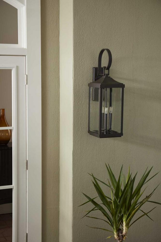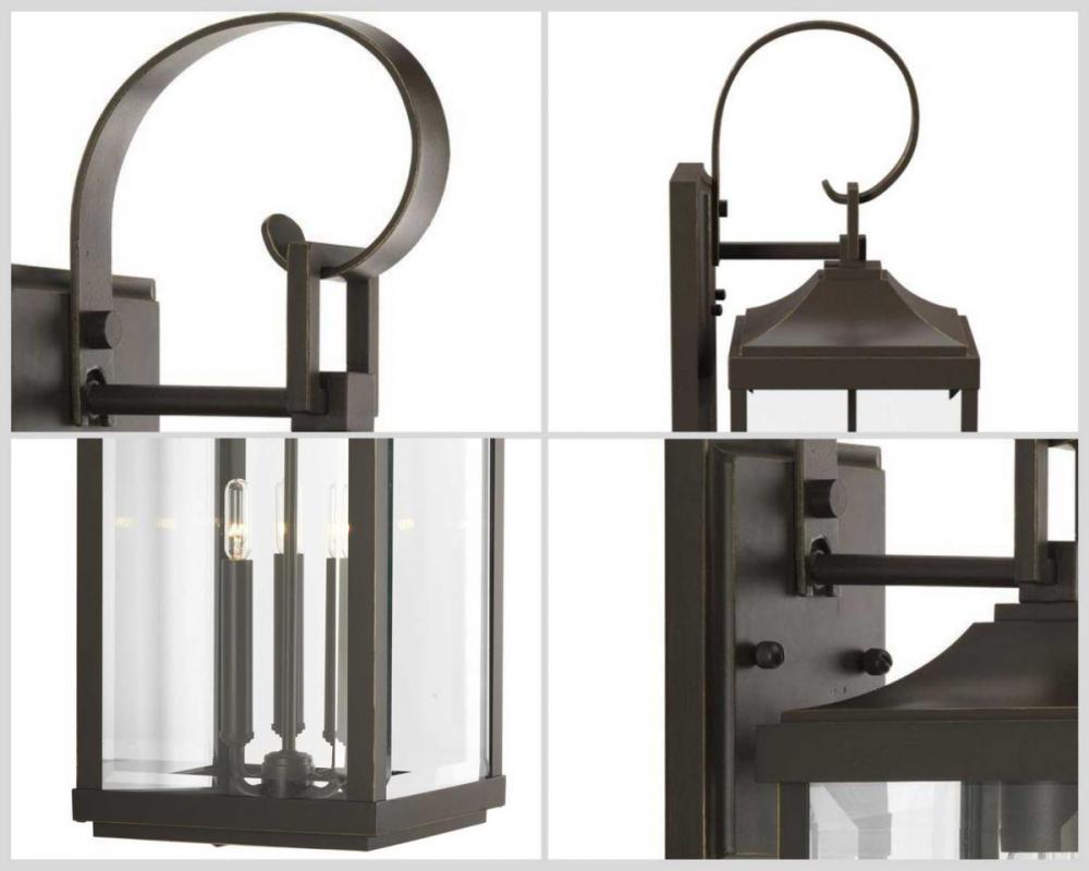 Antique Bronze finish.;Elongated frame.;Captures the romantic charm of a vintage gas lantern.;Clear beveled glass.