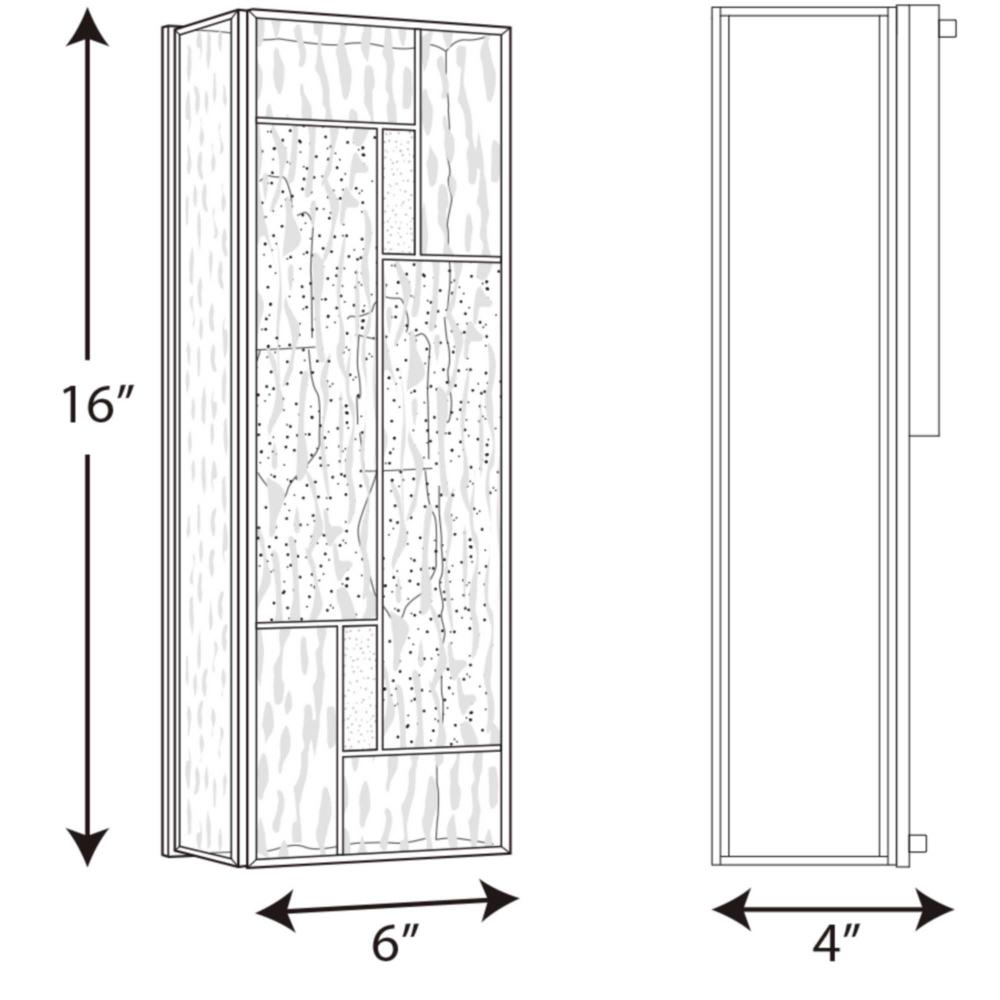 Features an artfully crafted glass enclosure.;Is highlighted by a pleasing arrangement of contrasting seeded and water glass panels;Architectural Bronze finish;Vertical mounted only.;ADA compliant.