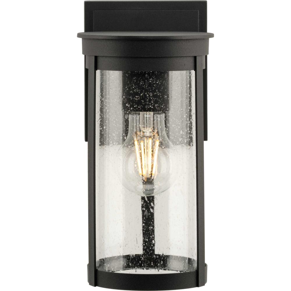 The Belden Medium Wall Lantern is defined by crisp linear segments encircling a clear seeded glass diffuser that casts a beautiful glow to porches, patios and outdoor living areas. Classic and contemporary, the design has understated elegance and modern appeal.Its clean circular silhouette is coated in a crisp black finish.
