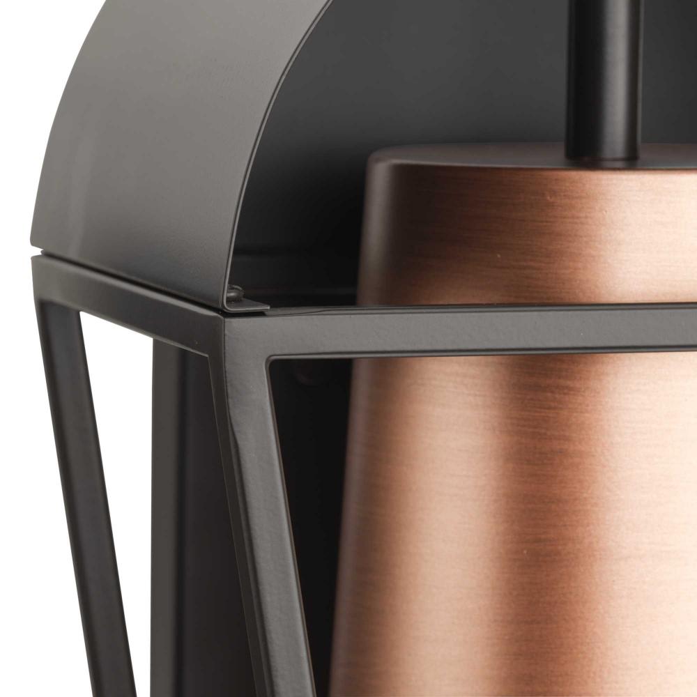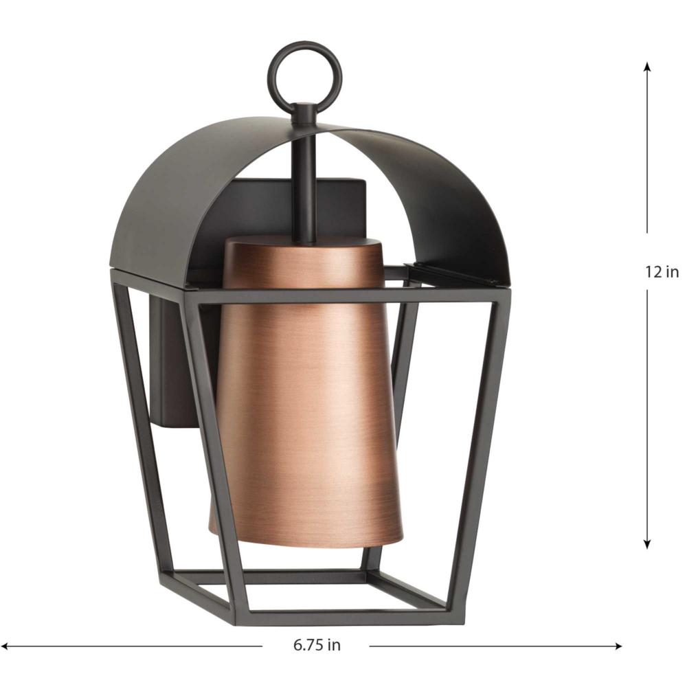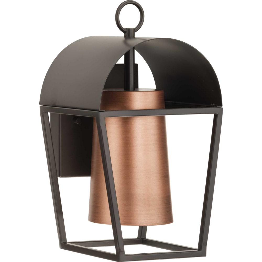 Modern cottage style adorns transitional exteriors in the Hutchence Collection. Its open arched frame finished in antique bronze encloses a contrasting shade crafted of opaque metal and coated in gorgeous painted antique copper. An ample wash of warm light is delicately cast downward from this Dark Sky friendly wall lantern, making it ideal for porches, patios and other outdoor spaces. It is cULus wet location listed for use where water may be present, with a one-year warranty to guarantee your complete satisfaction. Progress Lighting products are designed for exceptional quality, reliability, and functionality.