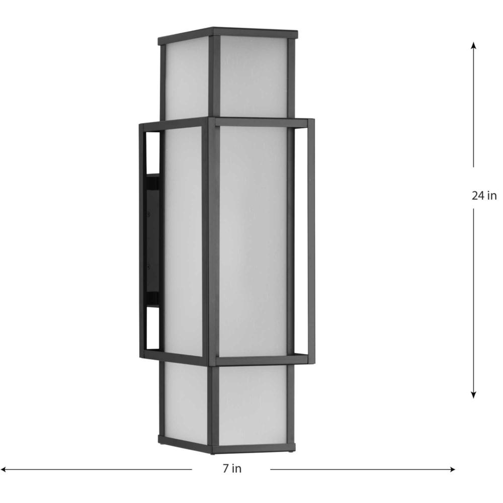 Crisp lines and sharp angles define the sleek silhouette of the Unison Collection. Interconnected rectangles finished in crisp matte black holds etched, seeded glass diffusers that deliver a mellow glow. This elegant large wall lantern makes a grand statement at a front entrance, patios and porches or inside in hallways, foyers and other rooms in contemporary, modern craftsman and modern farmhouse homes. It is cULus wet location listed for use where water may be present, with a one-year warranty to guarantee your complete satisfaction. Progress Lighting products are designed for exceptional quality, reliability, and functionality.