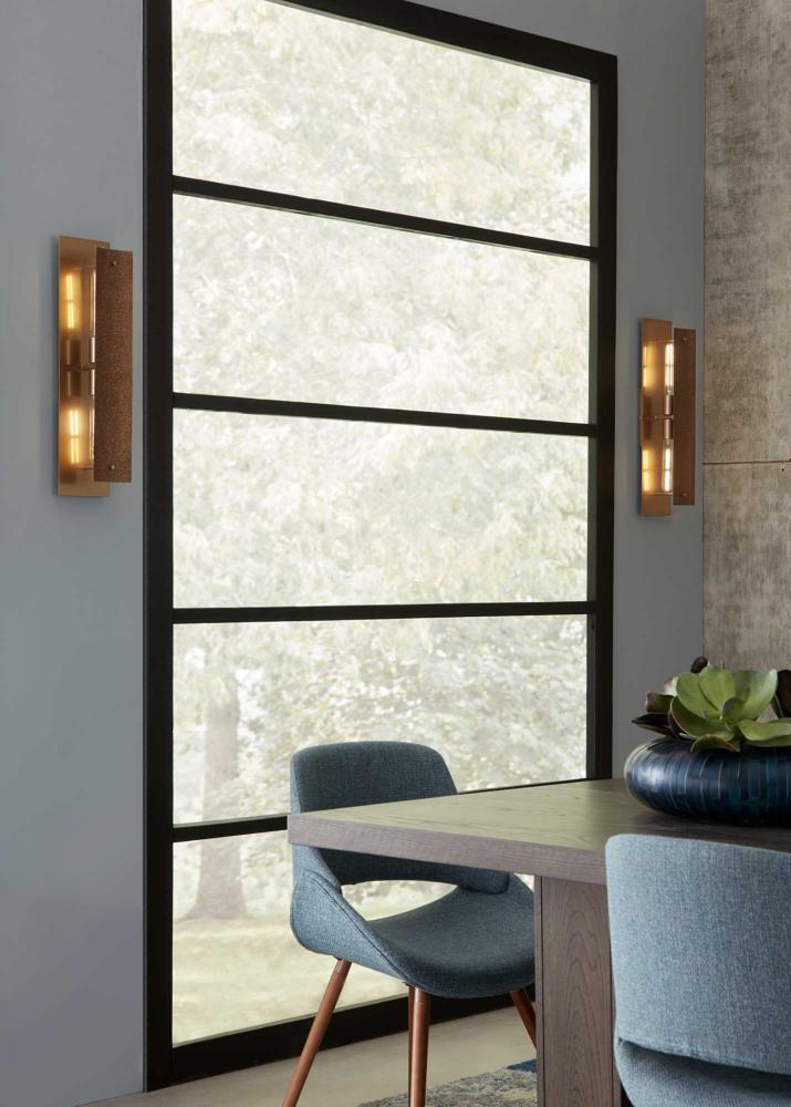 The fixture offers a rustic appeal to dining rooms, great rooms and bathrooms