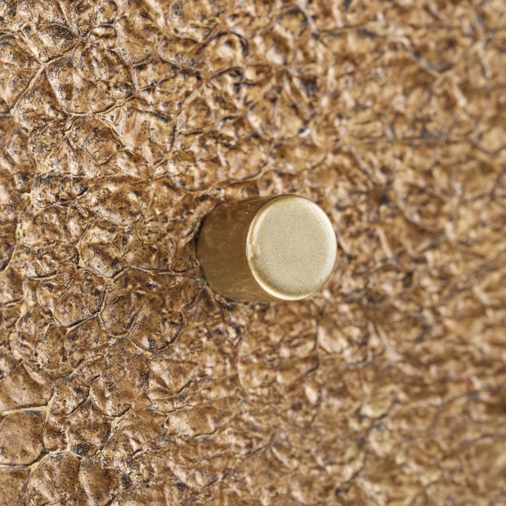 Its modernist frame is finished in a painted soft gold accented by foundry gold