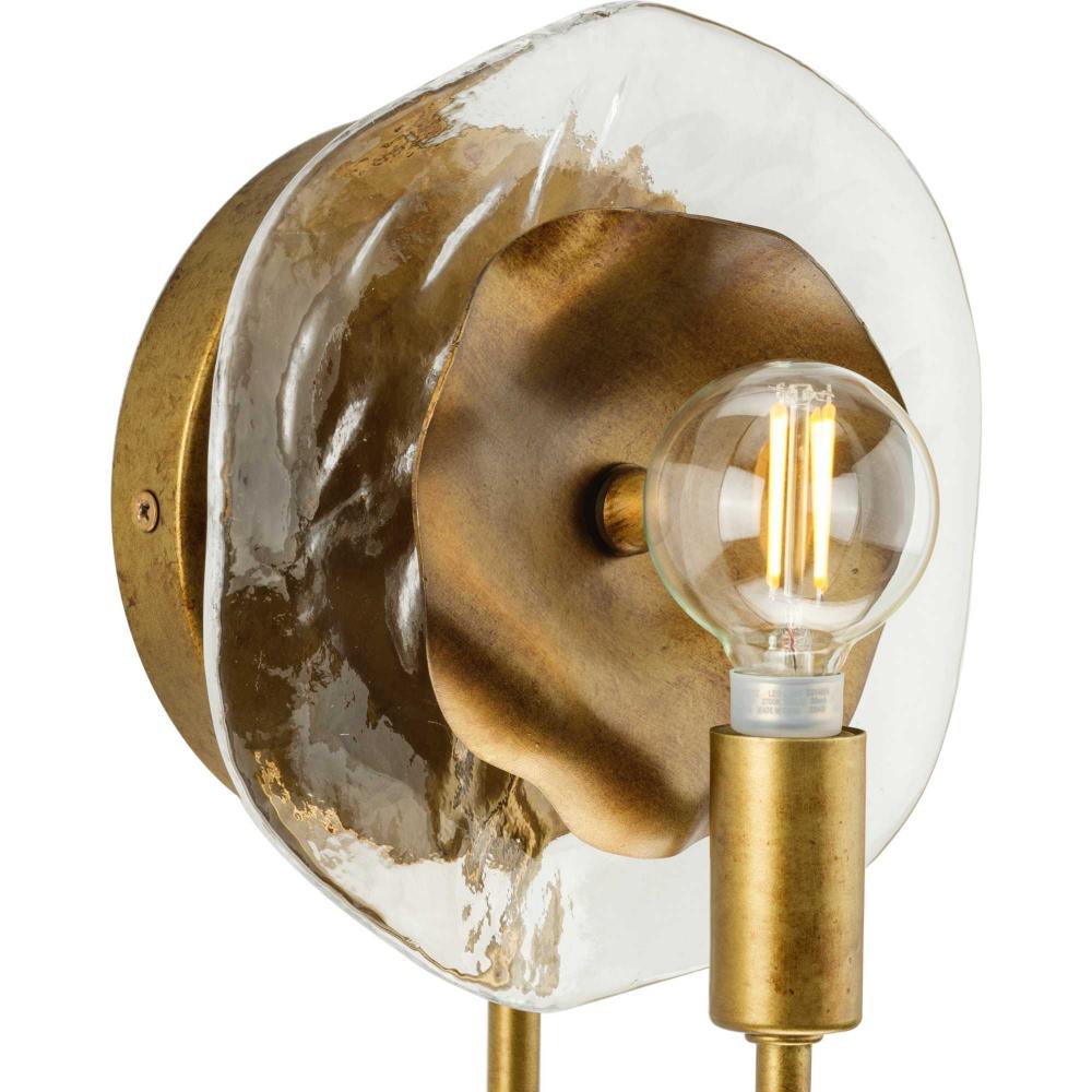 The Loretta Collection captures the serene feel of lily pads floating in a gently rippling pond. Glimmering artisanal clear glass is paired with handcrafted metal leaves finished in a soft, Gold Ombre patina.Light sources deliver an ambient glow behind the luxe glass and metallic discs that festoon its graceful frame. This fixture is part of the Progress Lighting Design Series, a lighting collection offering fashionable styles and affordable luxury lighting for the home.