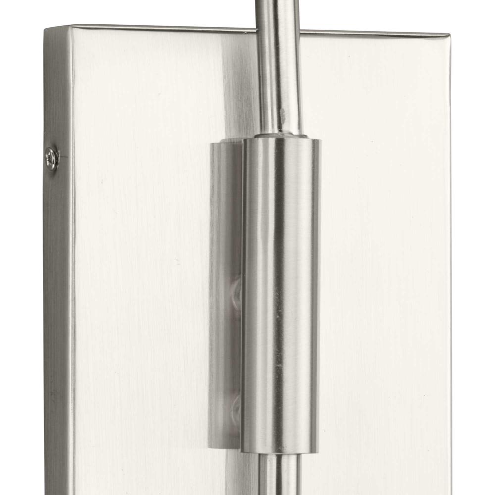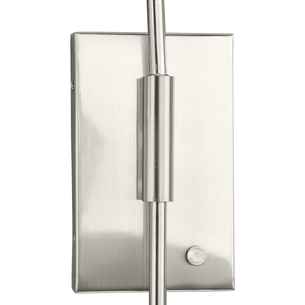 Cornett trumpets its arrival on the scene with a blending of timeless modern design. The swing arm sconce features dynamic angles finished in Brushed Nickel, offering a dramatic counterpoint to the softly sculpted curves of the matching metal reflector shade.Light is directed out and downwards from its unique, curved construction.