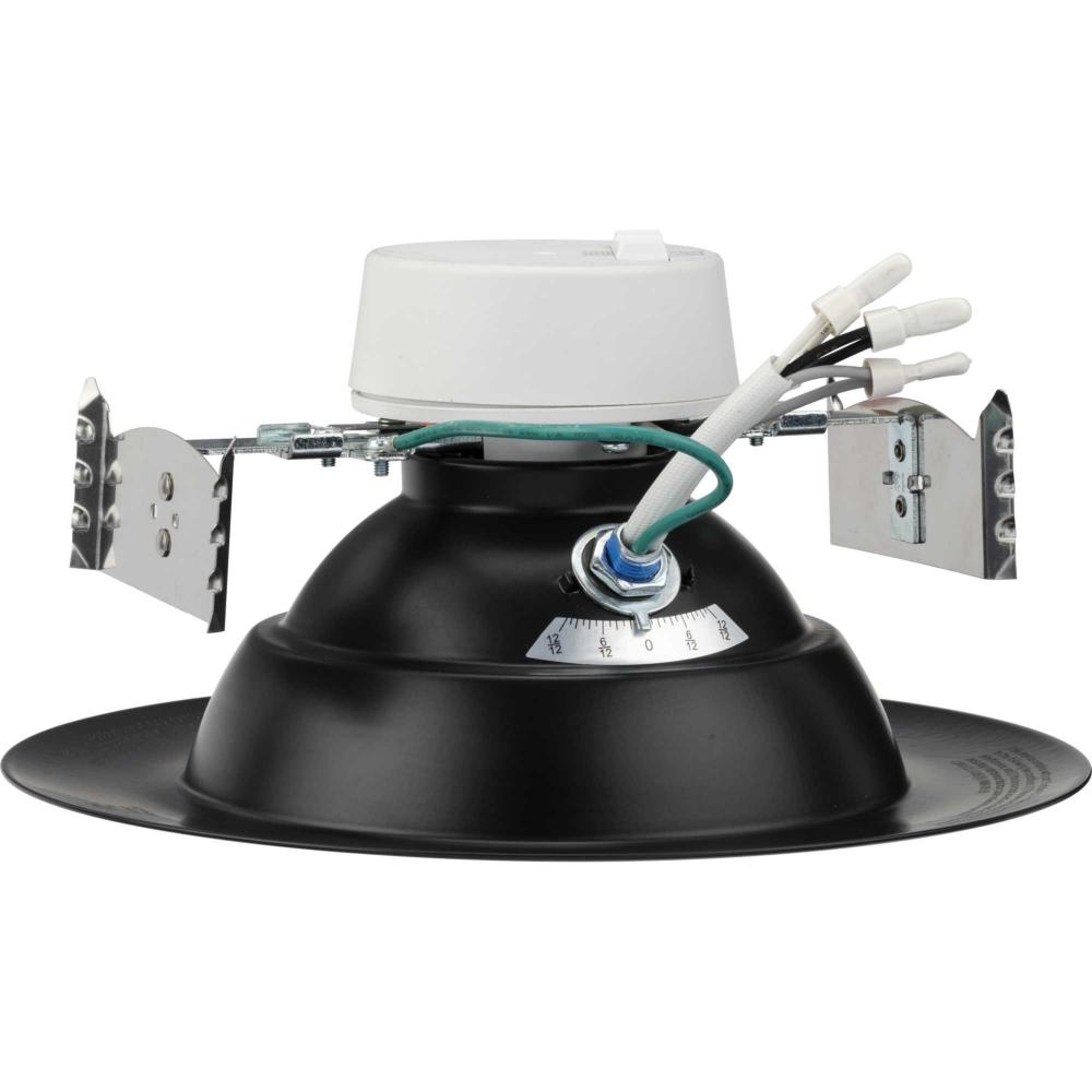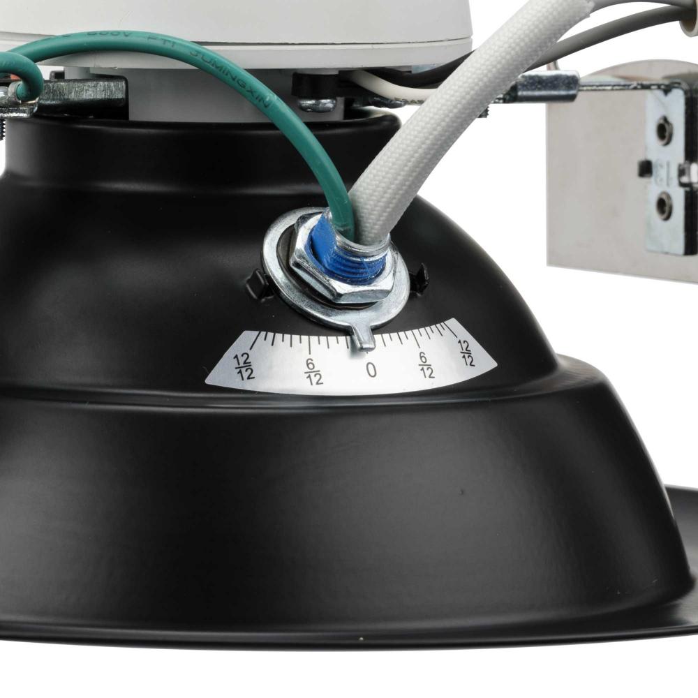 Elevate any room's design with the Intrinsic Collection 1-Light Recessed LED Eyeball Downlight. The smooth steel trim ring coated in classic black blends seamlessly into ceilings, offering an upscale look. The fixture can be used as a traditional recessed downlight, as a directional light or on slope ceilings. Slope indicator gauge makes installing to sloped ceilings easy. The adjustable integrated LED emits general ambient lighting. The 5-CCT selectable LED light engine offers flexibility in application, allowing the choice of 5 different color temperatures allowing for the best lighting color to fulfill the design intent. Light source has pitch and rotation adjustment to allow easy aiming of the light.
