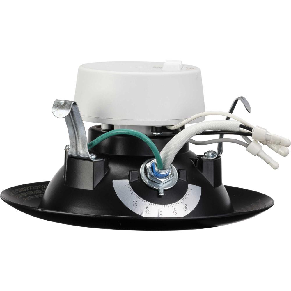 The Intrinsic Collection 4in.Adjustable Eyeball 5-CCT Black Recessed Trim has a smooth metal frame and a 4 in. aperture, providing an elevated look. Coated in a classic black finish, the adjustable light source can be aimed to allow the trim to be used as a standard downlight, accent light, wall wash or sloped ceiling light. This unique design allows the adjustable light source to remain hidden within the trim, allowing for the cleanest appearance. An integrated ceiling pitch indicator easily adjusts the light to match the ceiling pitch. The 5-CCT selectable LED light engine offers flexibility in application, allowing for the choice of 5 different color temperatures: warm, soft, bright, cool or daylight.