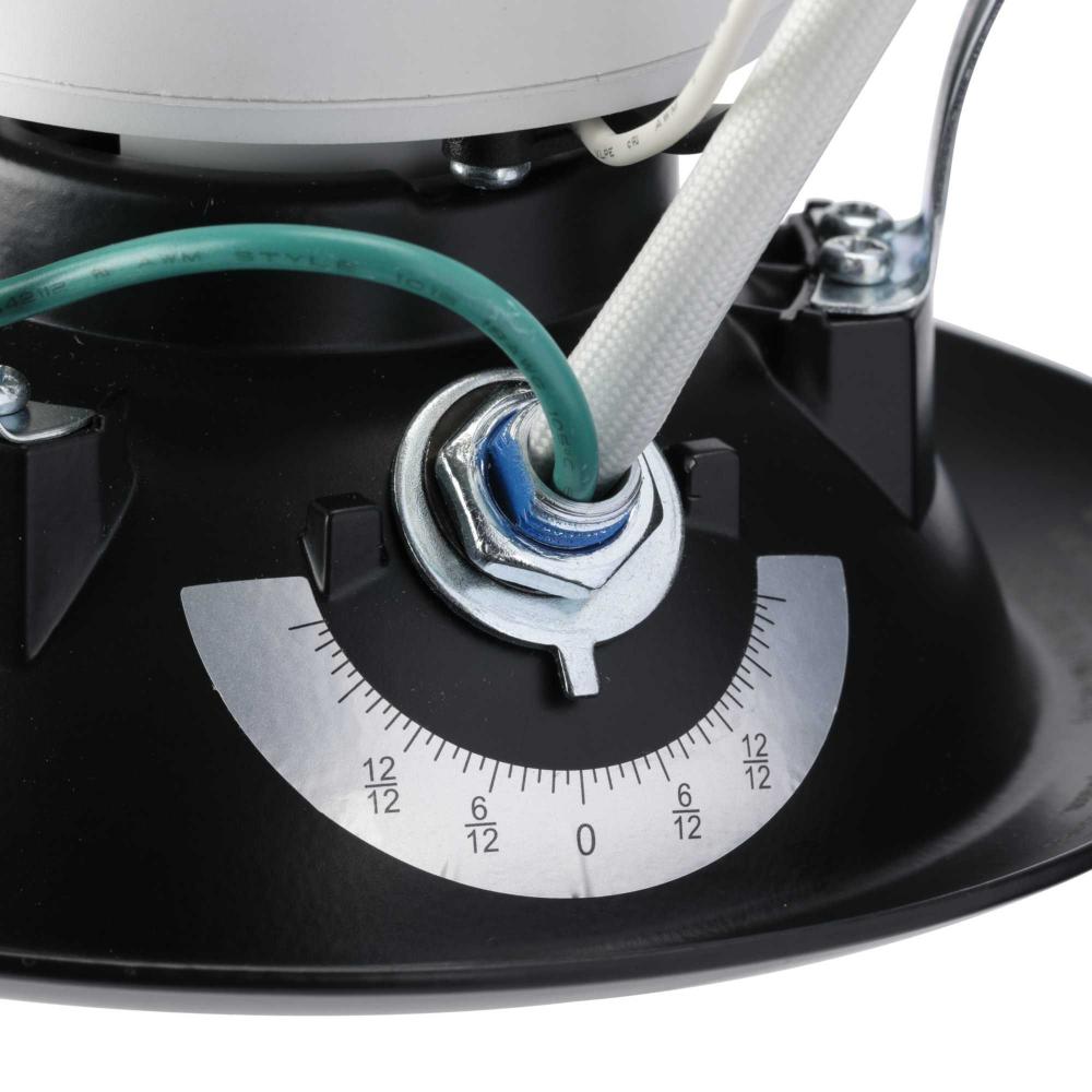 Unique design allows the adjustable light source to remain hidden within the trim, allowing for the cleanest appearance. An integrated ceiling pitch indicator easily adjusts the light to match the ceiling pitch