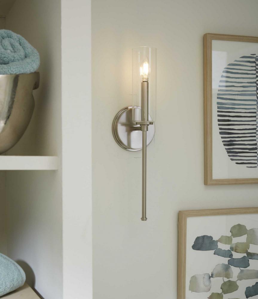 Customize the Elara fixture with a glass shade for a quick and easy way to create a whole new look in your home.;Clear glass shade is ideal for new traditional and transitional interiors;This shade is a clear cylindrical glass for chandeliers and wall brac