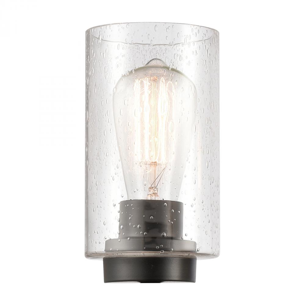 Hand carved cedarwood and birchwood rods are graced with clear seedy glass on this contemporary design.