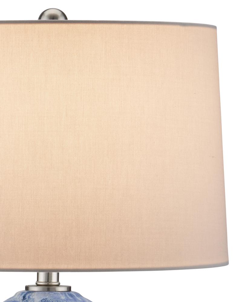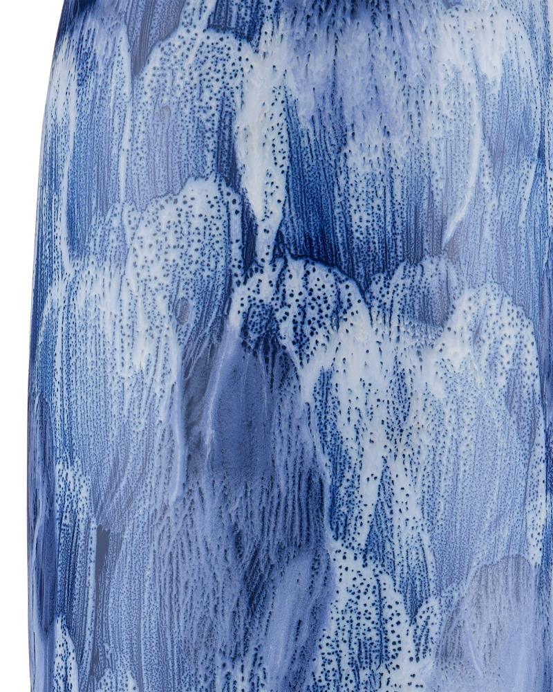 If the body of the Pallas Table Lamp was a canvas, it would be a true work of art because it has painterly brush strokes in white on blue flowing along its surface. Illustrating the handmade aspect of this particular fixture is the white glaze that bubbles where it is thickest over the luminous blue, giving the lamp greater texture. The intermingled smudges are layered onto the lamp to achieve added artfulness.