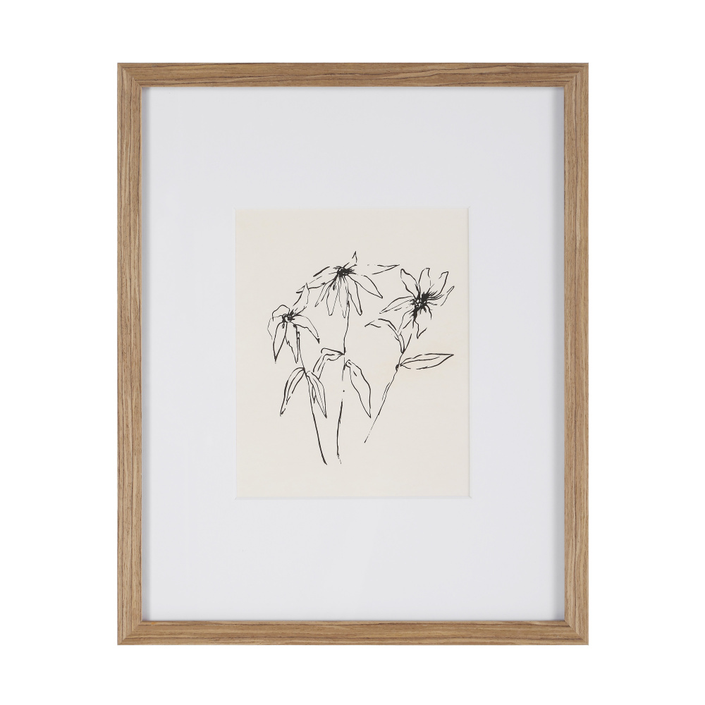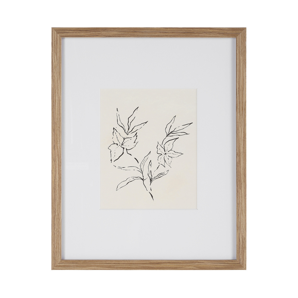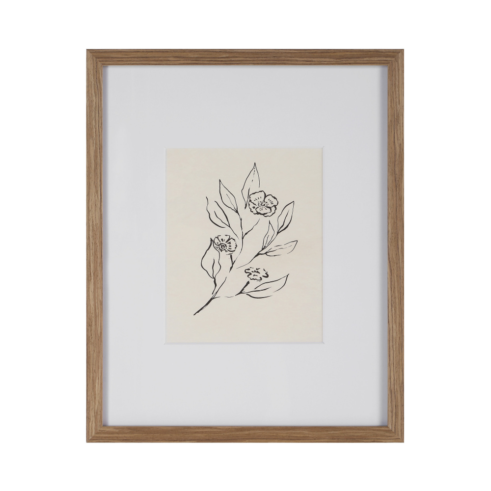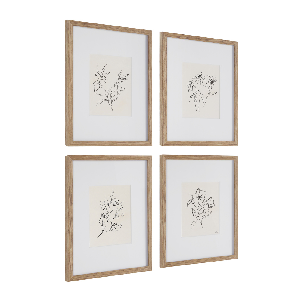 Traditional style gets a modern update with this quartet of botanical wall art. Designed with a beautifully neutral color scheme, each print features a medium walnut veneer frame and generously proportioned mat that highlights the simple but striking line drawing within. Display them as a grid or in a line for a timeless impact.