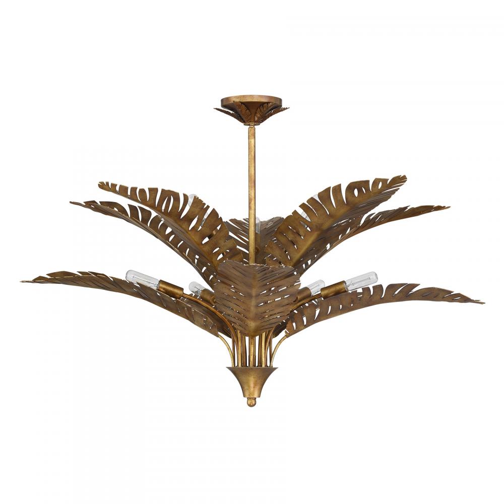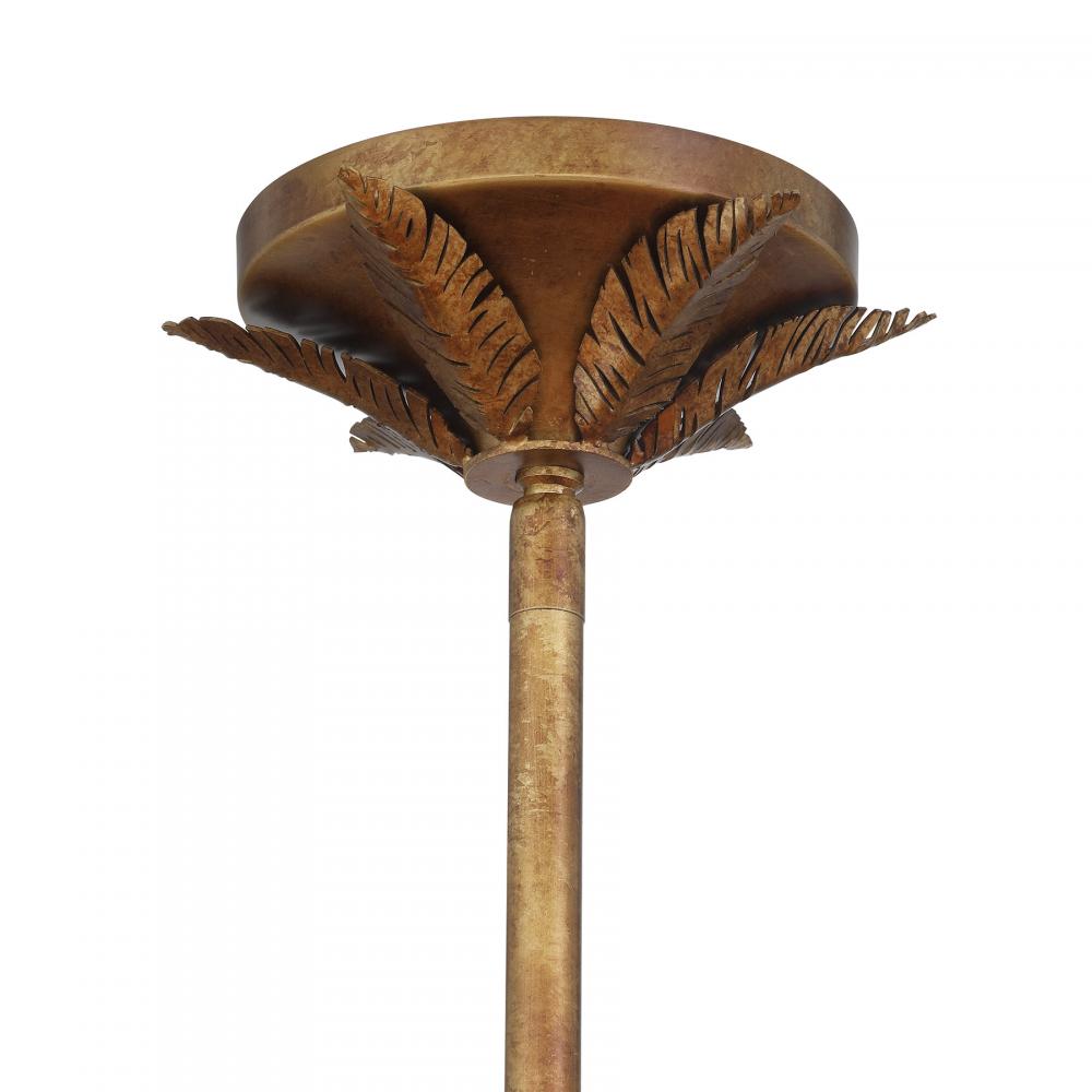 The spectacular Savoy House Palmera 10-light pendant was designed by award-winning interior designer and TV host Breegan Jane. Palmera reimagines the decadent, opulent palm leaves of the iconic Bel Air Hotel in an elegant way, becoming the perfect blend of Breegan's love for brass and her California roots. A highly textured Gold Vein finish adorns the intricate palm leaves, adding richness and depth. Palmera is 38" in width and has an adjustable height ranging from 16" to 70". It uses ten candelabra size bulbs of up to 60 watts per bulb. Bulbs not included. Comes with four 12" downrods and one 6" downrod.