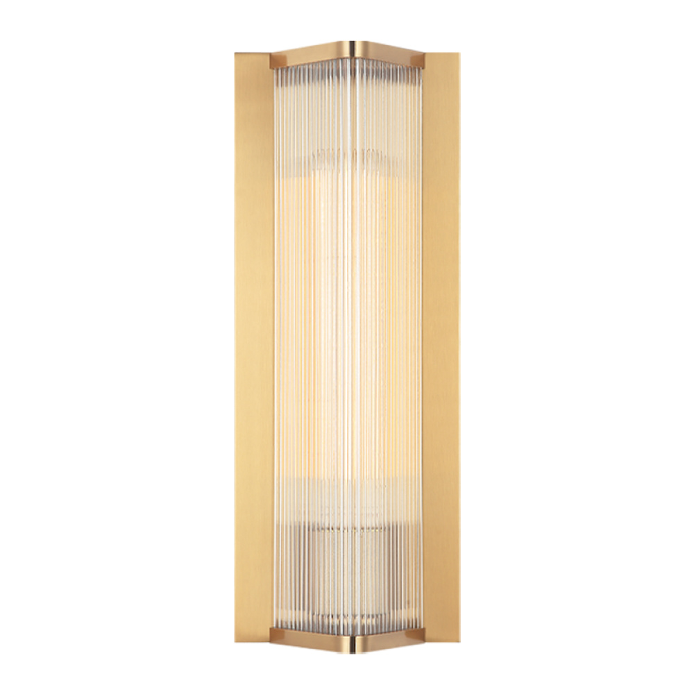 The Palmira is an exquisite wall sconce that comes in either Aged Gold Brass and Matte Black. The triangular shape and beautiful ribbed glass creates a gorgeous stand out statement piece.