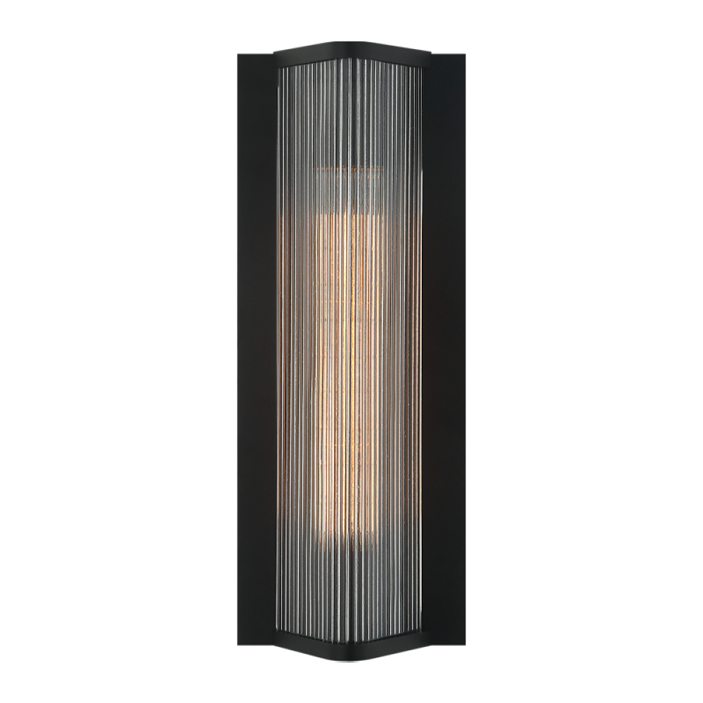 The Palmira is an exquisite wall sconce that comes in either Aged Gold Brass and Matte Black. The triangular shape and beautiful ribbed glass creates a gorgeous stand out statement piece.