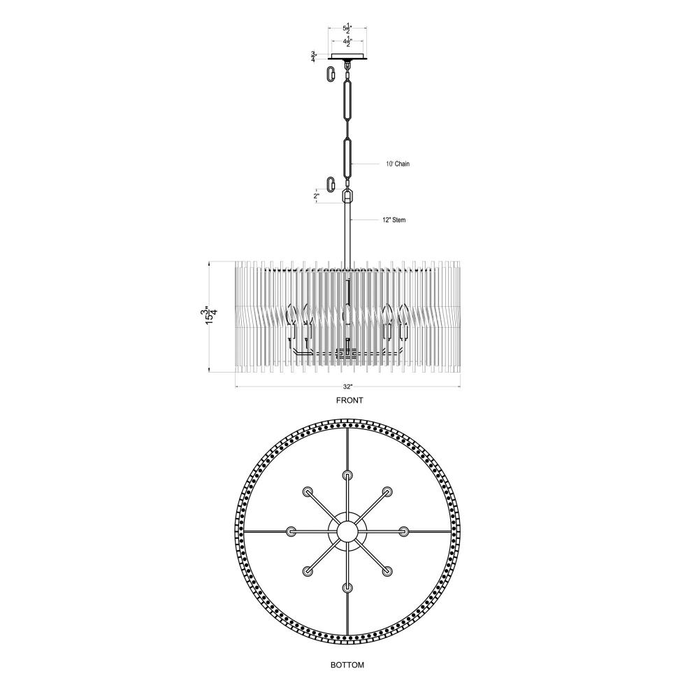 Inspired by the elements of New York City's Brooklyn Bridge as depicted in an illustration found in Smithsonian American Art Museum, the Park Row collection is sure to bridge the gap between functionality and inspired design. The Brooklyn Bridge's neo-Gothic stone towers support a hybrid cable-stayed/suspension bridge design, with both vertical and diagonal suspender cables, which are the inspiration for Park Row. The interwoven cables create a repeating pattern that we have wrapped around and support modern clear fluted, recycled glass rods. The collection is hand-forged from 70% recycled steel. Hand-finished in matte black with French Gold edges.