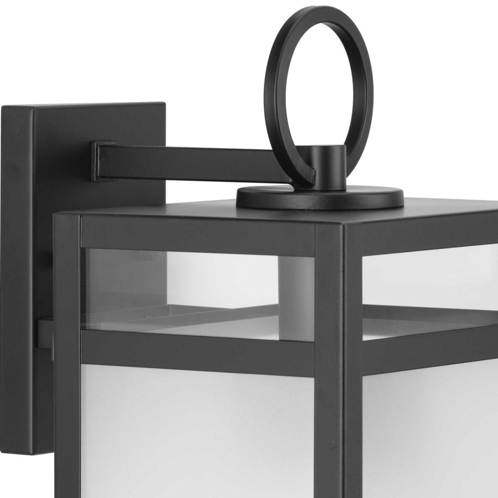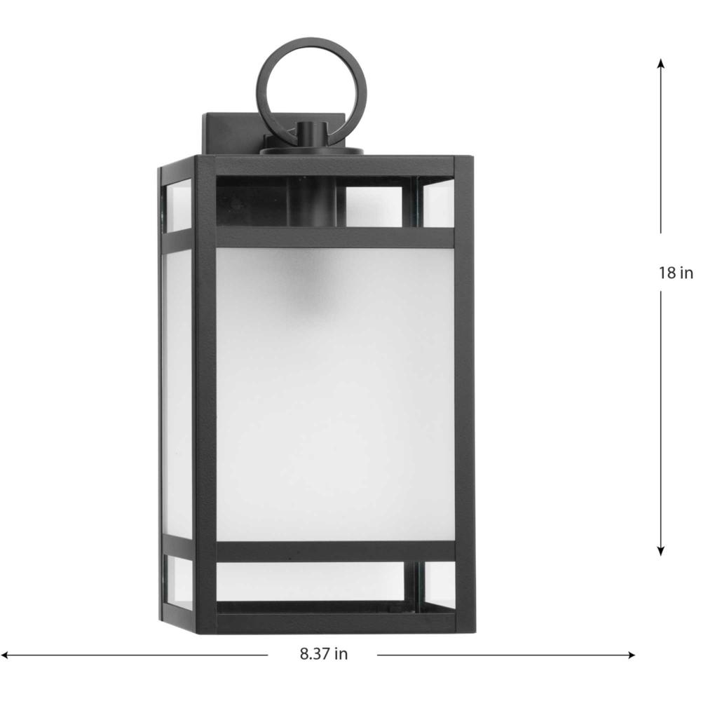 The Parrish Collection combines classic style with minimalist geometry to impart a modern appeal to outdoor settings in transitional and modern craftsman style homes. This large wall lantern features a sturdy, rectangular frame coated in crisp matte black and casts light through etched and clear glass panels, offering distinctive accents and softened illumination. It is cULus wet location listed for use where water may be present, with a one-year warranty to guarantee your complete satisfaction. Progress Lighting products are designed for exceptional quality, reliability, and functionality.