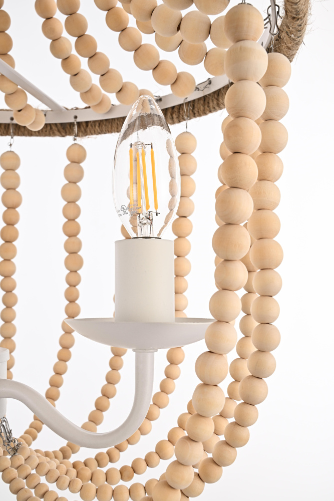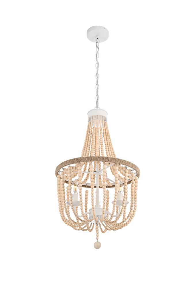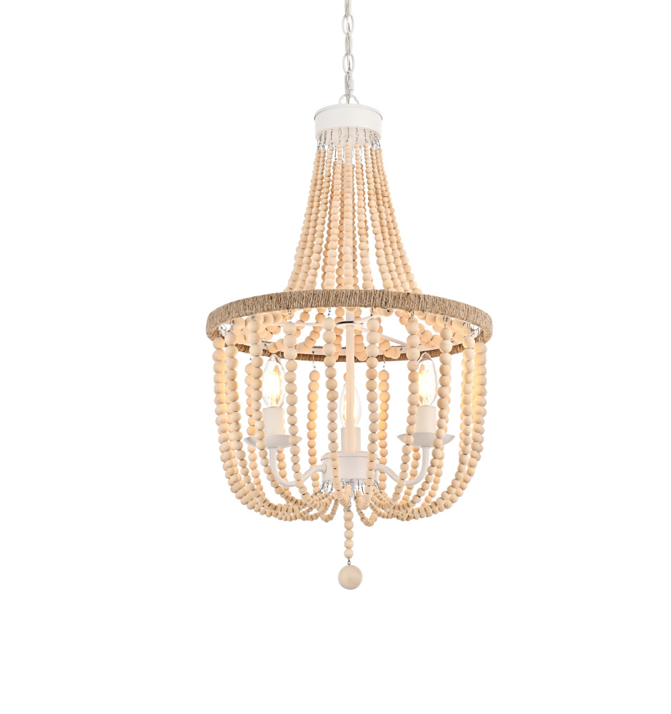 Elevate your space with this masterfully crafted pendant that artfully blends rustic charm with refined elegance. The dramatic cascading strands of wooden beads create a mesmerizing display of light and shadow, while the rope-wrapped crown adds an authentic touch of artisanal craftsmanship. Each piece showcases the natural beauty of carefully selected wooden beads, arranged in graceful loops that draw the eye upward and create a sense of gentle movement. The substantial iron framework ensures stability while maintaining an airy, elegant presence. Perfect for dining rooms, entryways, or living spaces, this versatile fixture adapts beautifully to various ceiling heights through its adjustable chain system. The three-light design provides ample illumination while creating enchanting patterns through the beaded strands. Whether styled in sophisticated antique white or warm natural beige, this pendant makes a striking statement while maintaining an organic, approachable presence. The thoughtful blend of materials and textures creates a piece that feels both timeless and fresh, making it an ideal choice for designers and homeowners seeking to create a space with both character and refinement.