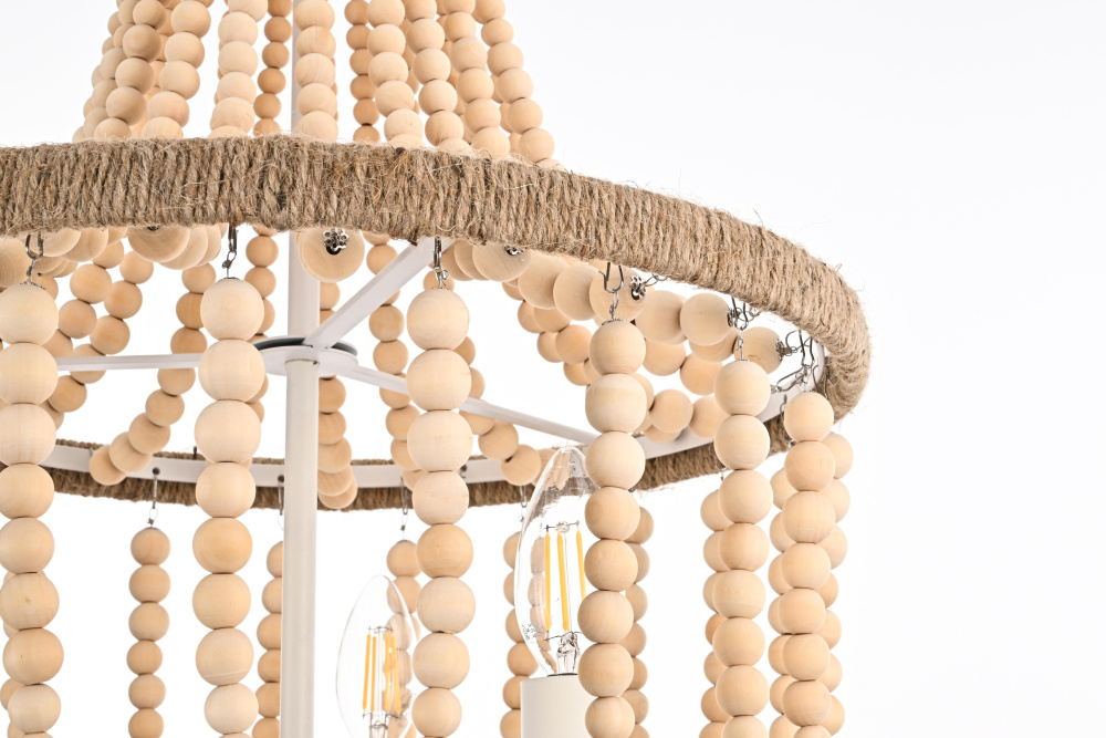 Raw beauty emerges through natural wooden beads and rustic rope detail, bringing organic warmth and authentic character to any room.