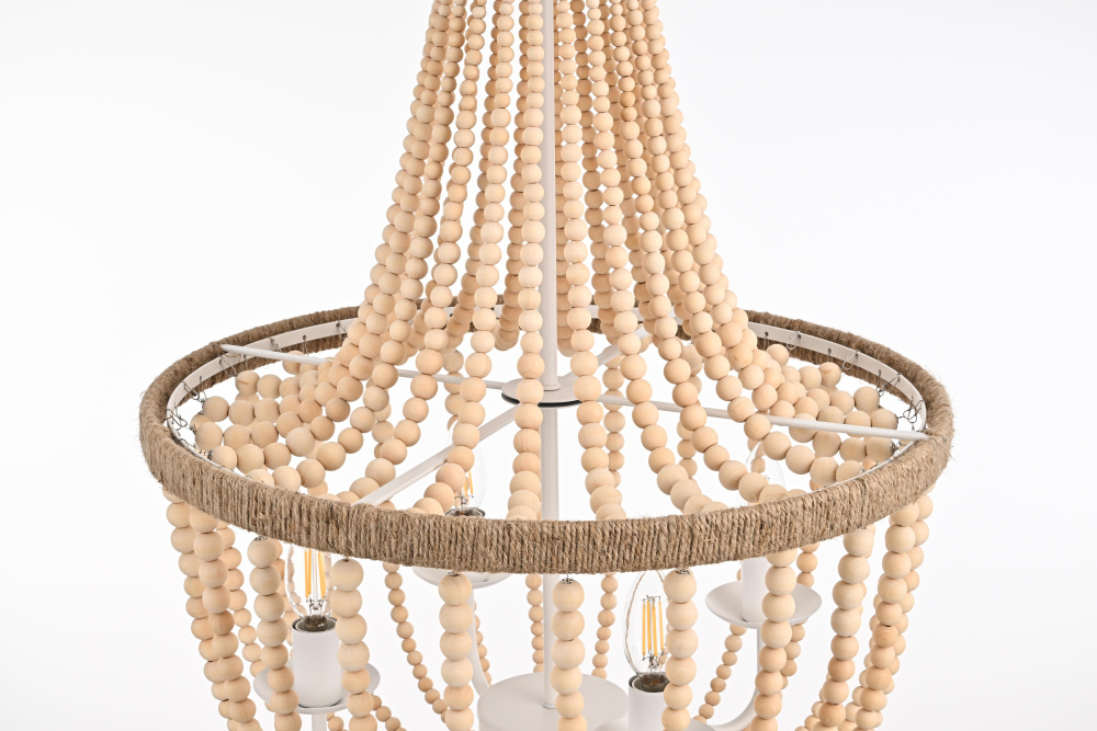 Raw beauty emerges through natural wooden beads and rustic rope detail, bringing organic warmth and authentic character to any room.