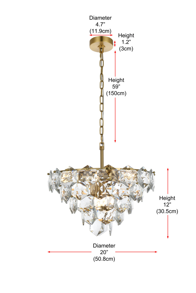 Transform your space with this cascading multi-tier pendant light that combines striking design with meticulous craftsmanship. Crafted from a sturdy iron frame and adorned with six-sided faceted crystals, this lighting piece exudes charm through its ability to diffuse light into a soft, radiant glow. With finishes available in both sleek chrome for a contemporary feel and satin gold for a warmer, refined touch, it complements a range of decor styles. The adjustable height, from 21 inches to 81 inches with the included 59-inch chain, ensures it fits seamlessly in any setting. Equipped with eight E12 sockets and dimmable functionality, you can customize the lighting to suit your mood or occasion. Its matching canopy and chain finish complete the cohesive design, making it perfect for kitchens, dining rooms, living rooms, or offices. A statement piece that transforms your space into a work of art, this pendant is the perfect blend of style and functionality.