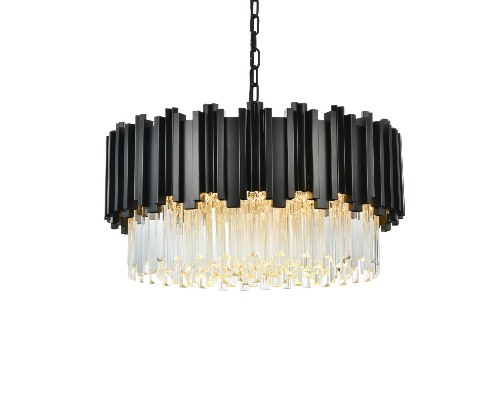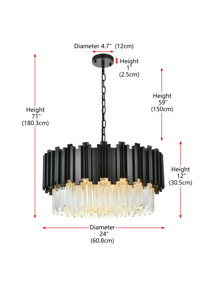 Transform your space with this stunning chandelier, a dynamic fusion of iron and staggered clear glass that exudes contemporary style and architectural artistry. The layered glass refracts light beautifully, creating a radiant display of glowing brilliance that fills the room with warmth and sophistication. The staggered arrangement of the metal and glass adds depth and dimension, making this chandelier an eye-catching centerpiece. Fully dimmable, it allows you to adjust the ambiance to suit any mood, from bright and vibrant to soft and inviting. Available in satin gold for a warm, luxurious vibe, chrome for sleek modernity, and black for bold, dramatic contrast, this fixture comes in various sizes to perfectly complement any space. Complete with a matching canopy, it’s an ideal choice for dining rooms, living rooms, or offices. Add a touch of refined geometry to your décor and bask in the brilliance of this radiant desi