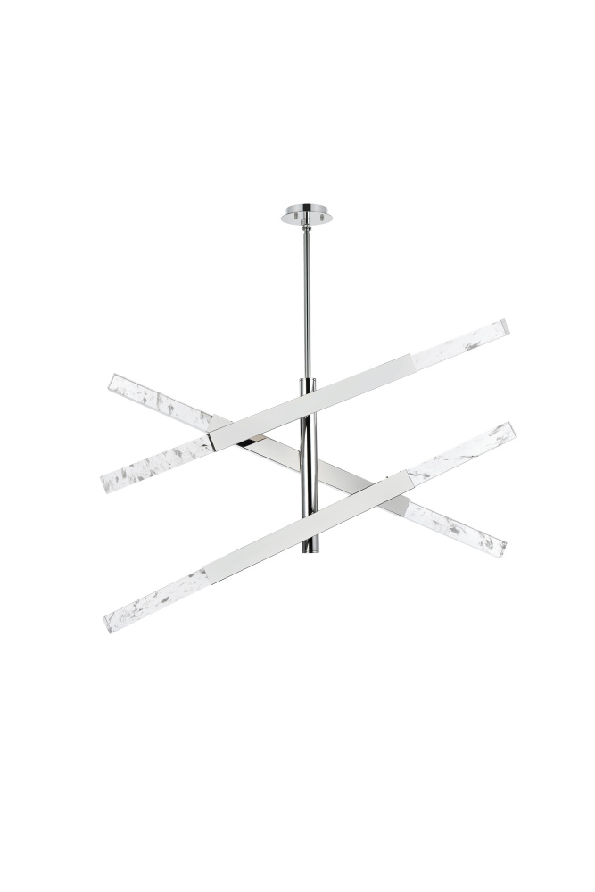 Featuring bold geometric lines and sleek bars, this pendant light is a contemporary statement piece that grabs attention.