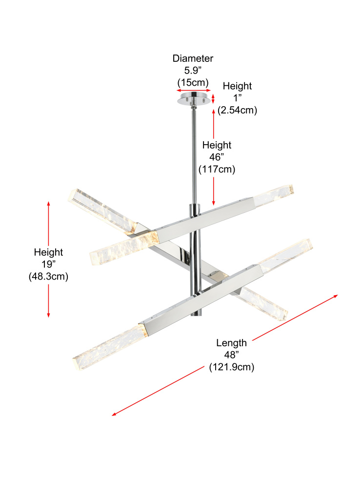 The chrome finish enhances the fixture's modern aesthetic, pairing perfectly with the luminous crystals for a clean, polished look.