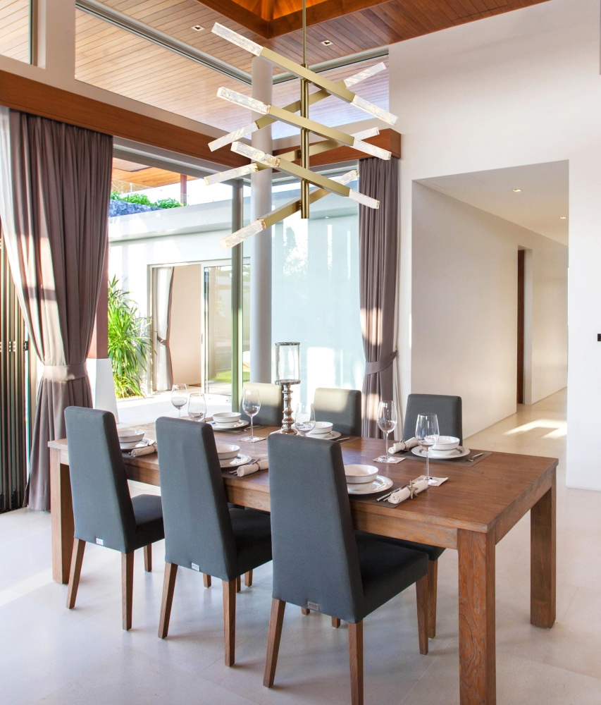 Featuring bold geometric lines and sleek bars, this pendant light is a contemporary statement piece that grabs attention.
