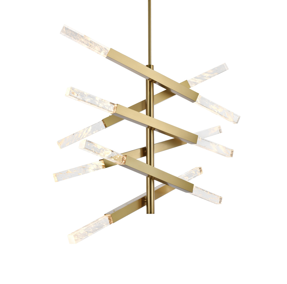 The satin gold finish offers a warm, luxurious touch that beautifully complements the shimmering crystal bars.